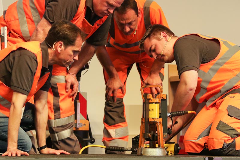 Das Ergebnis kann sich sehen lassen! Ein Deckelheber made by VGF ist dabei entstanden und hat den Praxistest ohne Probleme bestanden. Durch den integrierten Druckzylinder (bis 20 t) wird eine so hohe Kraft auf einen festsitzenden Deckel ausgeübt, dass er problemlos gehoben werden kann. Und zwar ohne den Entwässerungskasten oder die Gleisanlage zu beschädigen. Das ist auch gut für die Mitarbeitenden.